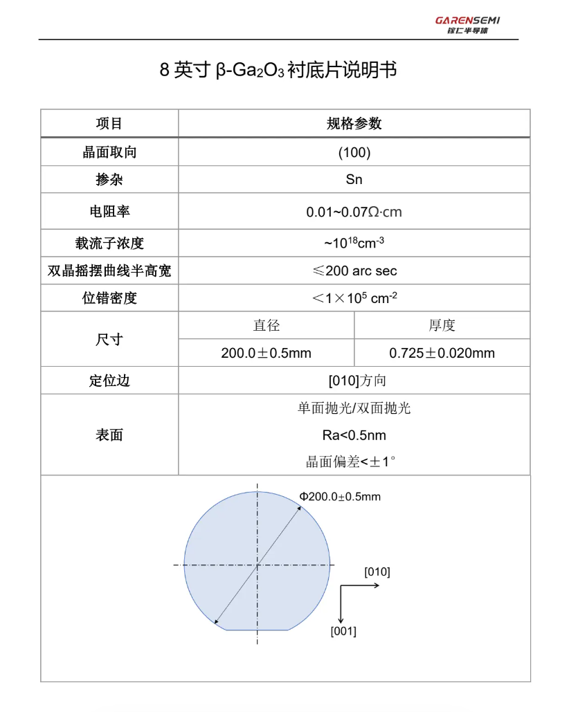 镓仁半导体可提供高质量8英寸(100)晶面氧化镓衬底,掺杂类型丰富。